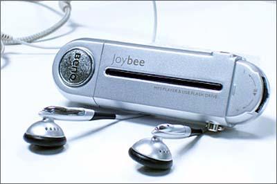 Joybee(中文名:快乐的小蜜蜂)是明基打进MP3市场的第一款产品,所以在品质方面厂家是绝对不敢马虎的。因为它是集MP3随身听和移动U盘合一体,所以外型和一般的移动硬盘差不多。简单易用、便于携带,人性化的设计为明基打进mp3市场立下了不少的汉马功劳。Joybee DA100虽然并不是金属外壳材质构成,但银色的机身给人以很强的金属质感。在操作方面JoybeeDA100是十分的简单的,它只要直接和PC连接不需要数据线。而且还可以安装Benq设计开发的QMusic接口程序来COPY mp3,而且QMusic还具有刻录的功能,可以烧刻CD光盘。而这款机一大缺陷就是不带显示屏,在操作方面会带来一定的麻烦,但是总的来说它是一款不错的MP3。目前价格128M的在699元。