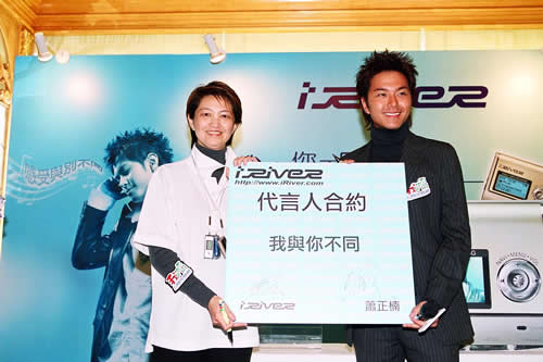 或许你对右边的这位明星不是很熟悉,那么IRIVER这个MP3界的响当当的品牌总不会陌生吧。在中国市场赢得一片掌声的时候与歌手萧正楠签约作为其品牌代言人。IRIVER也希望通过这位香港人气歌手,把年轻人这个目标群体进行大规模的品牌推广。
