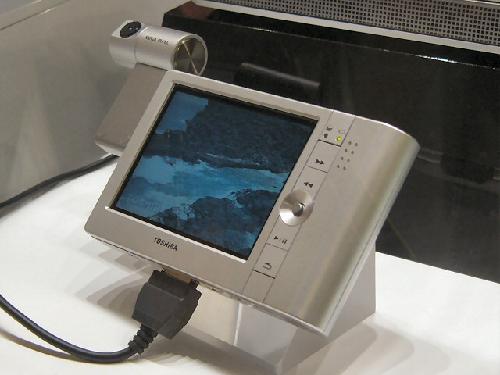 东芝Mobile Viewer 3.5寸屏幕分辨率为320×240,支持MPEG-4视频格式,可以实现30帧/秒的QVGA视频播放,20GB的硬盘容量能够存放将近80小时视频。虽然它支持一些特殊的格式,但JPEG、MP3、MPEG、MPEG4都能照放无误。它最特别的功能是能够添加100万像素的摄像模块,当作一个相片和视频拍摄工具。Mobile Viewer具备了完全的音频、视频输出接口,能够连接音响和电视,成为全功能的家用娱乐单元。