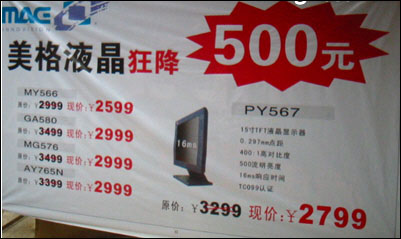相信大多数朋友都明白,液晶的成本在很大程度上由面板决定,不过今年液晶面板的报价能一路走跌,而且许多大厂的5代线、6代线纷纷上马,面板产能相比去年的确有不小的提高,供过于求的局面本就形成。再加上许多显示器大厂在仓库内留有大量的库存面板,所以下游厂商的采购量大幅减小,看着留在手里的面板,上游厂商唯一能做的就只有降价了。面板的价格一降,LCD的降价也就在情理之中。