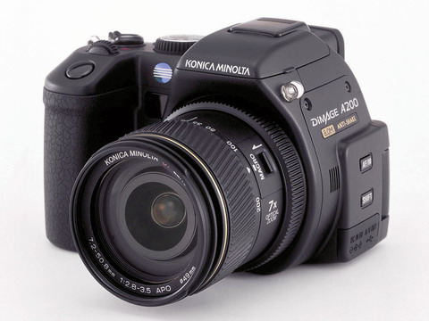 Konica Minolta于9月15日发表八百万像素的新款数码相机?DiMAGE A200,与 A2 同样是7x-zoom、CCD-AS (Anti-Shake, 防手震) 功能的高端数码相机。A200 为 DiMAGE A2的后继产品,并且有许多功能上的改良。