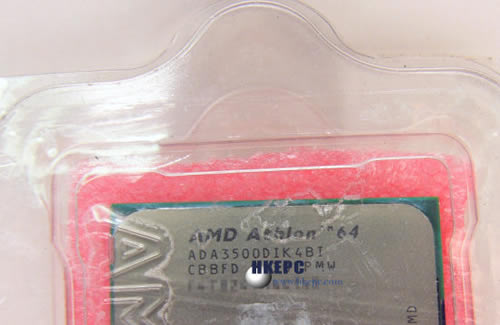图为Athlon 64 3500+ Socket 939的工程样本,可以看到其代码最后两个字BI,代表其已转入90奈米制程。
