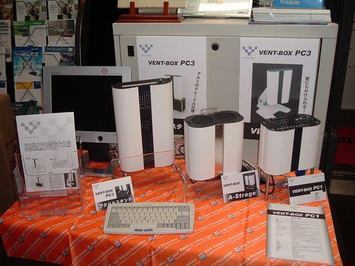 所展出的Vent-Box均采用的是支持VIA Eden 600MHz处理器的Mini-ITX主板,型号有类似孔明灯造型的“PC1”和类似台灯的“PC3”以及配备IEEE 1394接口的造型古怪的外置硬盘??“A-Storage”。