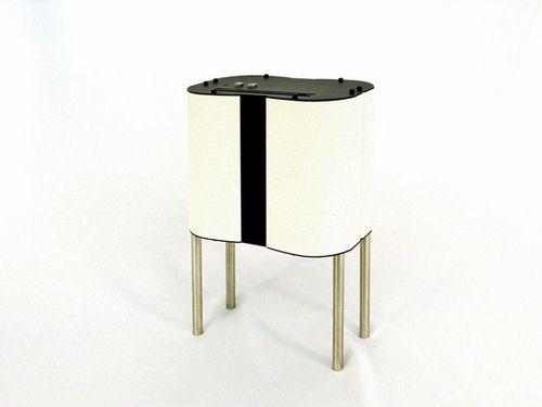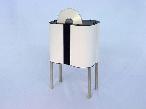 这就是Vent-Box “PC1”,整个机箱靠底部的四根不锈钢柱支撑起来,黑色的顶部凿满了圆形散热孔,其吸盘式的光驱也设在顶部,想象一下当我们要取出光碟时光碟是从顶部缓缓的伸起来,嘿嘿,感觉还真不错。