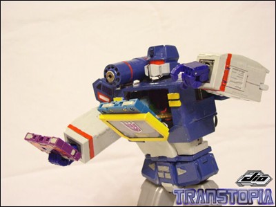 虽然在很多细节方面,这个声波做的还不是太完美,但是磁带仓部分则继承了G1时代模式,可以放进1个磁带部队,如机器狗、激光鸟、轰隆隆等。
