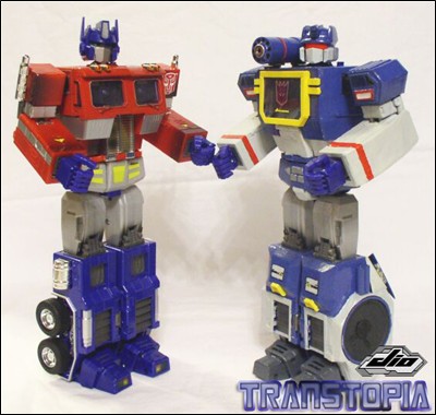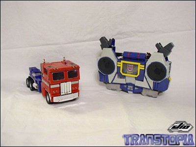 与其说是DIY,到不如说是改造来得更恰当一些。这个声波的主体是美国孩之宝今年推出的20周年纪念版擎天柱(日版为长烟囱版本),关于这个玩具可谓是超级强,有兴趣的朋友可以到网上搜搜看。不过虽然是改造,但毕竟这个声波也是可以变形的,虽然录音机的形状和动画片中差别比较大,但也很符合现在mini音响的味道。