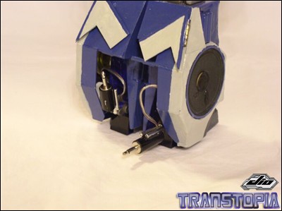 这是音频输出部分的改造图,老实说大哥这个姿势还是很难摆的,这多亏了20th擎天柱的超级可动性。音频方面它有两个立体声的大尺寸喇叭,感觉要是中间是银色的金属盆,或者上面有一层金属网感觉就更好了。