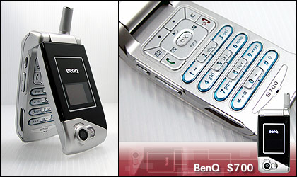 BenQ S700手机的正面,采用类似 Sony Ericsson T610 的外壳,因此让人第一眼就可以感受到这支手机的时尚感。而音量键、拍照键及红外线都放在左侧,不用担心在掀盖时会不小心按到其它按键。