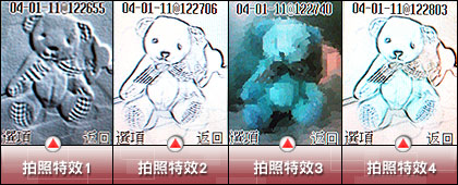 既然名为百万像素手机,拍照的功能当然最令人关注。拍照的品质有高、普通可设定,若是在光线不足的地方拍摄,还可打开闪光灯或是开启夜间模式,它也可以自行调整光圈大小。对于想将照片呈现多种样貌的人,S700 也不会让你觉得无聊,它的特效模式有很多种,包括色彩对换、灰阶、墨黑、浮雕、素描、粉蜡笔、水彩画、画笔、油画、影线、偏绿等。至于 BenQ 颇受受欢迎的独家变脸特效,S700 也有内建。此外,它也支持影片录制,但较不方便的是,它无法从拍照快速键作选项设定,必须先到娱乐功能中找到录像的项目,才能开启。