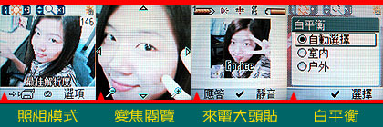 内建30万像素数码相机的SL65,采用6万5千色屏幕,拍照时画质真是相当漂亮。在照相模式下,按左右有 7 段亮度调整,按上下可 5 段变焦,你也可以到选项中切换所需要的分辨率。拍好后,变焦模式让你能够仔细的浏览照片,放大缩小或左右检视皆可。而白平衡具有自动、户外或是室内三种模式,使用者可依照拍照情境调整。SL65 也支持来电大头贴,接听电话马上知道来电者身份。