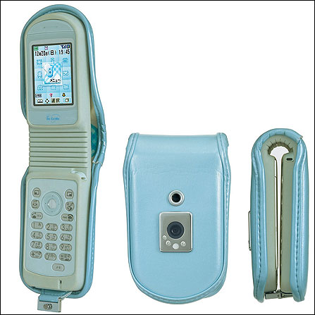 在推出超薄机型“prosolid”的同时,松下也为爱美的时尚女性献上这款皮革打造,类似钱包造型的“Lechiffon”。Lechiffon在摄像头的装饰上下了一番工夫,星型,方块和花状的金属边框包裹着31万像素的CMOS镜头。转轴的设计上让人想起即将上市的Nokia 2650。其屏幕是1.9寸220*176像素的26万色半透式TFT。 Lechiffon的三围是102*65*27mm,重约116g。连续待机时间约为400小时,通话时间约为125分钟。机身有粉红,蓝,白三色。