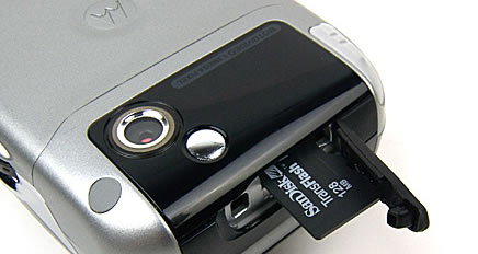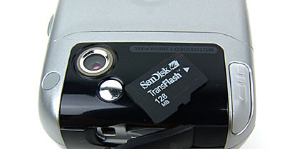 A780还配备了一个TF卡插槽,随机标准配置128MB TF存储卡,最长可达2小时的连续摄像,并在摄像过程中实现了变焦功能。