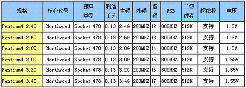核心架构的衍变同样使中端面临着两种不同的选择:Northwood核心的P4C系列处理器和Prescott核心Socket 478接口的P4E系列处理器。