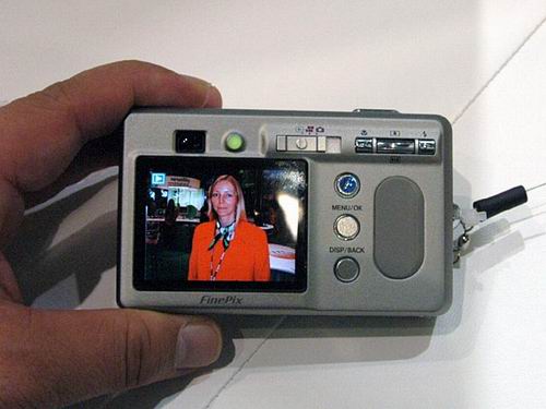 3.4倍光学变焦的富士珑镜头焦距按照35mm换算相当于38~130mm,光圈F值为F2.8~F5.5,可以拍摄320×240/160×120像素、10fps的动画,机身背面使用了15.4万像素的2英寸TFT显示屏以及光学取景器。