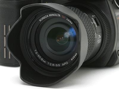 在顶级机型DiMAGE A2和其他一些高端机型如A1/7Hi/7i/7,甚至是一些袖珍相机上,我们都能看到红色字母标记的GT字样。GT镜头是从美能达传统单反相机的专业级大口径G系列镜头演变而来。GT镜头是授予以严格的判定标准筛选出的数码相机专用高级镜头的名称,它是一种能实现超精细,浓缩了美能达公司独有的,将色差和变形散光等控制在最低限度的图像处理关键技术(GT= G Lens Technology)而制成的不同凡响的高画质镜头。而在合并后的柯尼卡-美能达以及合并前的柯尼卡数码相机上,如G系列相机上我们会看到GT HEXANON字样,说到HEXANON就不得不提到柯尼卡的镜头。早在1928年,柯尼卡就成为了日本日本第一家制造日本镜头的公司,比尼康还要早三年,后来一直应用于柯尼卡的高档小型相机上并备受推崇。