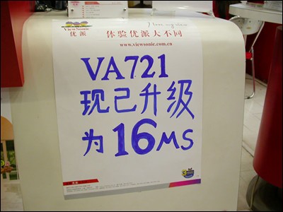 在看到诸如三星、LG等大厂将自己旗下的LCD产品进行性能升级后,优派又将前不久刚刚下调至2999元的VA721液晶显示器从25ms的响应时间提升到了16ms。这样一来,不仅使该款显示器的性能得到了大大的提升,同时,也使其进一步加入了主流行列。