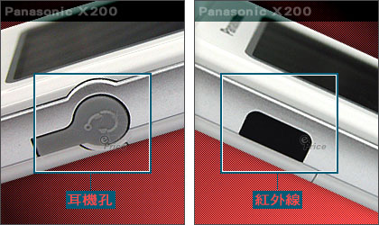 于主屏幕位置的左、右两方的机身侧面,设计有耳机孔与红外线埠。耳机孔同样以软塞保护。如此简洁明了的设计,让使用者一目了然。