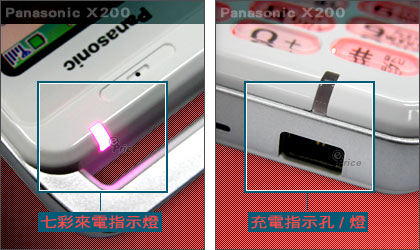 在机身顶部有一个来电指示灯,可帮助你不轻易错过来电。而机身下方设计有充电孔,并且还有充电指示灯,使用者充电时更可以多加确认是否充电成功。