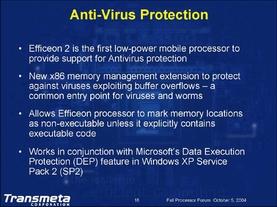 上图:具备Anti-Virus功能;下图:显示新Efficeon支持SSE3。