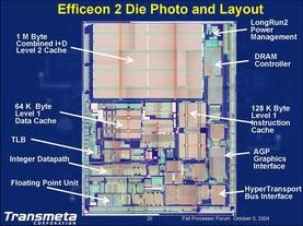 上图:处理器外观;下图:第二代Efficeon面积更小。