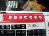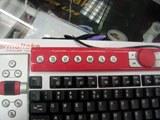 此款键盘被称为Office键盘,它尤为引人注目的是它上面众多的附加功能键。在键盘的最左边,我们看到的功能键主要实现一些编辑操作,最上方是功能开关,打开开关后,这些功能键能实现剪切、复制、粘贴等功能。另外那个醒目的红黑色滚轴可以起到和鼠标滚轮一样的作用。