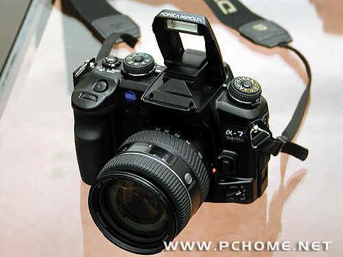 再看另一个主流大厂柯美,美能达的传统单反相机许多人都十分喜爱,因此美能达是狂热的技术派厂商。而新合并后的柯尼卡美能达也没有让我们失望,它在佳能EOS20D之后,也迅速推出了新的DSLR,α-7D,这款产品的参数配置均很高,尤其关键的是它机身密密麻麻的按键和拨盘。这款相机所针对的是轻量级和重量级肥胖人士,如果有人使用美能达的传统相机,那么,柯美α-7D倒是能为他的减肥历程画上鲜明而有效的数码味道。