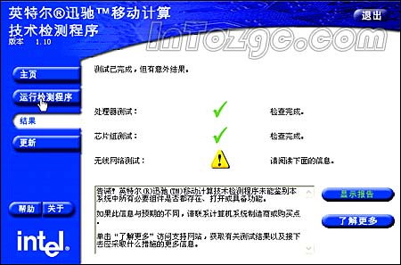 不过,这种情况在Intel推出专用检测软件后迎刃而解。只要为本机装上“迅驰移动技术检测程序”就能很快分辨假迅驰。