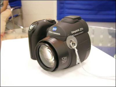 这部美能达Z-1的上市时间大约是在去年的十月左右,因其前卫的造型受到不少保守人士的攻击,甚至还有一个“吹风机”的绰号。小编觉得既然是数码相机,怎么也算是个新潮玩意,前卫一点能有什么错?再说数码相机是用来拍照片的,又不是摆放在那看的,过分追求外观那不和MM买相机一样了?:)