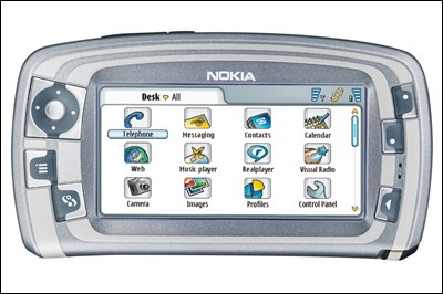这是两张7710的效果图,其实它机身背后还安装了一个百万像素级别的数码相机,并拥有两倍数字变焦。这款产品留给用户的可用空间为90MB,并可以扩充128MB的MMC卡,使用Symbian OS操作系统。7710计划今年四季度在亚洲开始上市,欧洲和非洲市场则要等到明年一季度。