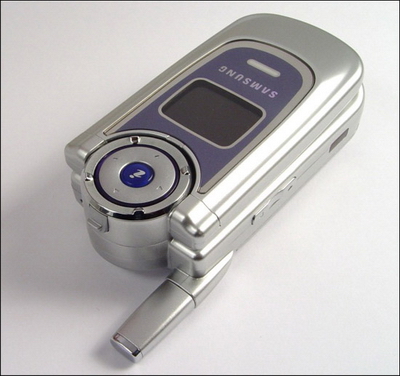 好了,介绍了这么多GSM机型,也要照顾一下我们的CDMA用户,最有发言权的自然是三星了。X699是三星全新设计的旋转翻盖手机,银色的机身配以淡蓝的装饰色,延续传统的高贵元素。转轴可以向上90度折叠,也可以旋转180度,其高灵活性和上面特殊按键,体现超强的科技感与时尚感,不太像真实世界的商品,反而很像电影中的道具。当然,由于导航区跟普通按键区域有一定的高度落差,初次使用会很不习惯,需要长时间进行适应。