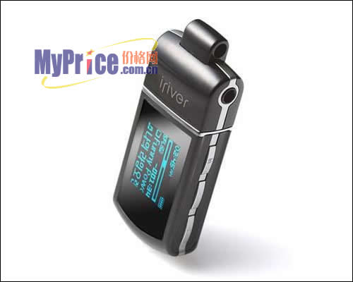 这是IRIVER首款采用OLED屏显示的MP3, 16级灰度,显示分辨率为96X64像素,可显示4行文字,字体为蓝色,在黑色屏幕的衬托下把高贵之感发挥的淋漓尽致。机身内置了四个屏幕保护动画,可随意更换,它还支持38国语言显示。