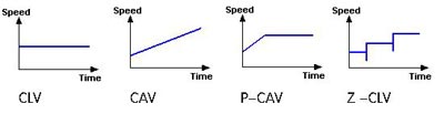 其中CLV,之所以称为恒定线速度,主要是因为这种模式使刻录机在工作时由始至终都保持一定的线速度(传输率)来运转,但这样在读内圈时,由于半径较小,因而刻录机必须加大马达的马力来提高转速以获得与外圈相同的线速度(在这里可以理解为读速不变转速逐渐减小),当马达转速太快时,巨大的发热量让本来就通风不良的电路板工作稳定性下降,盘片在高温下反射激光的效率下降,激光头读取数据的能力大打折扣,刻录机的噪音将无可避免,不仅不稳定,而且刻录品质也会不一致。由于在16倍速下DVD每分钟的转速差不多接近了万转,而10800rpm是DVD转速的极限,当超过时DVD片将有破裂的可能。因此此读盘方式主要应用于早期的低速DVD刻录机,目前的刻录机器已经弃用的此种读盘方式,因此大家不必过多留意。