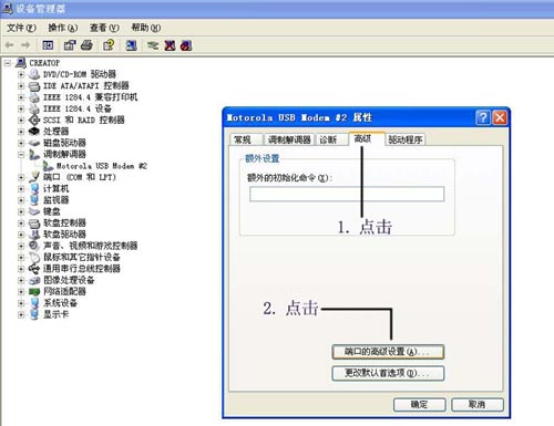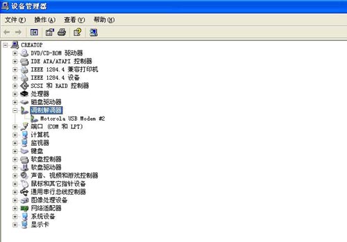1、首先将用数据线将手机连上计算机,然后打开计算机的设备管理器,找到“调制解调器”,双击打开后可以看到“Motorola USB Modem”这个设备,如下图: