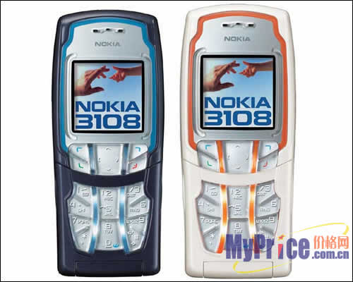 诺基亚3108三围尺寸为106×45×20mm,重量仅有85g,机形大致上和6108相似,但风格却大为相反,充满活力,大走流行前线,值得一提的是3108的做工非常不错。