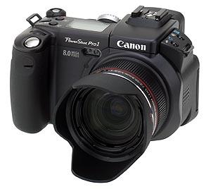 Pro 1 采用 2/3" 英寸八百万像素 CCD ,提供分辨率 3264 x 2448 清晰照片。镜头焦距相当于传统相机 28-200mm F2.4-3.5之7x 光学变焦镜头,是目前最后发表的八百万机种。之所以 Pro1 成为众人目光焦点,在于 Canon 把照相机品质的坚持和超精度镜头表现,被定名为"L-series"代表,的 L镜首次放在数码相机之中。 L镜的特点在于其特殊萤石元料,这种氟石水晶配合 Canon UD 玻璃镜片能够较常规光学玻璃减少更多异常的色散发生,改进锐利度和真实颜色表现。简单的说,过往只要镜头中加入了 L镜,这支镜头至少比同级没有 L 镜的镜头要多贵2、3千元以上,由此可看出 L 镜的价值。