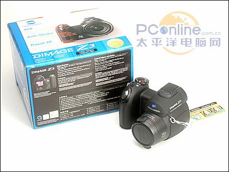 Z3基本已经把长焦数码相机的优点集于一身,35-420mm(相当于135相机)十二倍超级光学变焦,柯尼卡美能达特有的AS CCD偏移防抖动技术,对于一台长焦数码相机来说已经是非常优秀的了。与此同时,更小巧的体积,更流线型的设计,更高速的对焦速度,足以让Z3傲视群雄。Z3配有400万像素的CCD,具有完善的手动曝光设置,使用SD卡扩充,电源为4颗5号电池,各方面也基本上无可挑剔。