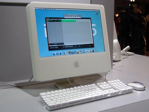 新型的iMac G5计算机,它不但拥有高性能的G5处理器,并且以惊人的全新设计将整台电脑集成到平板显示器之中,令人叹为观止。 iMac G5将一台完整的计算机系统装入厚度仅为5厘米(2英寸)的空间中,当之无愧成为世界上最薄的台式机。新的产品线提供17或20英寸的主动式矩阵宽屏液晶显示器,最高可达1.8GHz的G5处理器,起价仅为13900元。