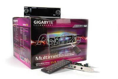 技嘉的这款产品包括四个功能组件,光驱本身当然是主要的,同时它还带有一个遥控器用于遥控控制,一个外接电源用于在不打开电脑电源时提供电能,同时还有一个接口卡用于连接电源和音箱。