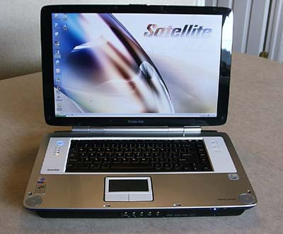 Satellite P25是东芝推出的一款台式机替代型笔记本,在试用了一时间以后,我不禁为其优美的外观和强大的功能所陶醉。蓝色的金属外壳与银色的 搭配,显得极为时尚,当你打开屏幕时,会不自觉地为那宽大、明亮且好看的17吋高分辨率(1440×900)宽屏液晶所吸引。