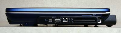 Satellite P25系列笔记本的接口非常齐全:四个USB 2.0接口、迷你型火线(IEEE 1394)接口、外接VGA输出、并口、S端子、56K MODEM、10/100M网卡、线路输出、话筒与耳机插孔、红外端口、PCMCIA插槽以及一个SD读卡器。