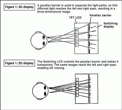 这项新的3D成像技术在3D模式下可以为左右眼变换图像从而造成立体效果,而2D模式就是把隔板切换成透明方式。