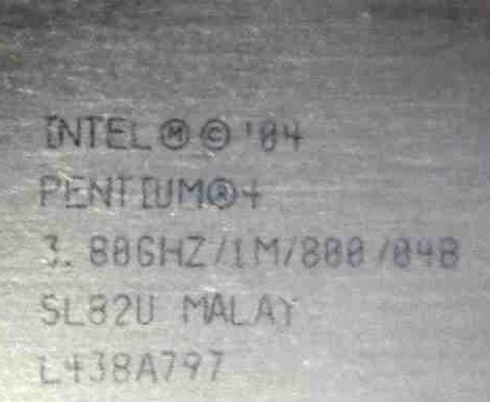 Intel宣布取消4Ghz Pentium 4的发布计划,那么现在看来3.8GHz就是Pentium 4的最终频率了。这款Pentium 4采用E0步进支持「NX bit」反病毒功能。零售价格近5600人民币。