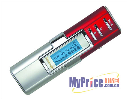 这款MP3的外型类似椭圆柱,机身为ABS工程塑料的材质,重量很轻。采用了银白色与红色各半的外壳,比较有时代感。