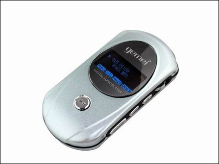 B9是歌美进军mp3市场最为引人注目的一款机器,B9采用了独特的跑车外观设计,尤其是正面那款刻意微微突起的钢化玻璃保护盖,特别有跑车的味道,因此整机充满了速度的动感和线条之美,内置锂电设计也保持了他的轻薄,UBS接口,LINEIN接口,耳塞接口合三为一,也很好的体现了机器简洁风格。B9的外壳采用的是全金属材质,富有时尚感,不过整机感觉比较轻,缺乏稳重感。