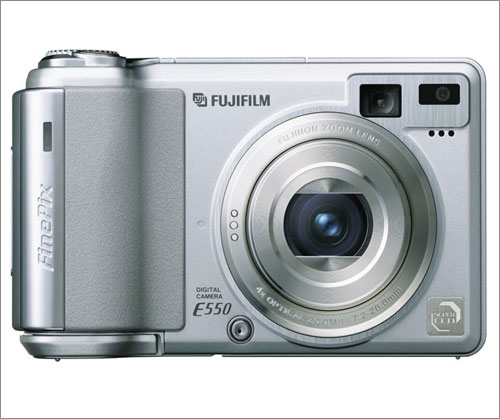 E系列是富士公司在7月份刚刚推出的时尚系列机型,而E550就是E系列的最高端机型。它采用富士独家开发的第四代超级CCD HR作为感光元件,最高可以输出12.3万像素的图像,同时也可以拍摄6.1万像素的RAW图像,它的规格为1/1.7英寸。镜头为4倍光学变焦的富士龙镜头,相当于35mm画幅的32.5-130mm。丰富强大的功能以及快捷的拍摄速度是这款机型的主要亮点。