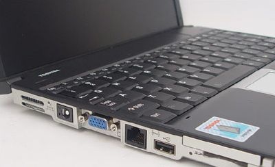 在机身左侧有CF卡、SD卡2合一读卡器,虽说不全面,但能支持最常见的2中存储卡,还是比较实用的、同时在PR150小巧的机身上还设置了USB2.0接口、网线接口和VGA接口,并在机身右侧有PC卡插槽、无线网络开关、应该说这样的接口基本能满足日常需要,而同R100一样,R150也没有内置光驱。需要通过外接光驱来解决软件安装等问题。外观上,由于东芝设计师的高超技艺,使得整机面积较同类机型缩小14%,并且这款机子在主机与显示屏之间使用了最新的“L”型连接技术,大大加强了上盖与主机之间得稳定性。
