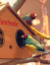 看到这只小鸟就已经能够明白它的出身,在这么短的时间里,VIEWSONIC的产品胡锦鸟形象已经如同BENQ的大嘴鳄鱼一般深深地植入了我们的心中。前两年优派为17寸CRT显示器做宣传,赠送的带有胡锦鸟LOGO的显示器外套,让我们第一次认识了这只来自澳洲的小鸟。