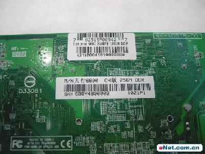 显存方面,七彩虹GeForce 6600标准版正面搭载了8颗TSOP封装的显存颗粒,不过已经换成现代4ns产品。这点刚好满足了GF 6600显存频率500MHz的要求。