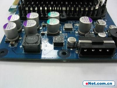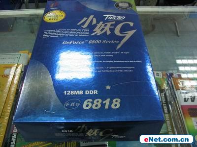 此款显卡的型号为小妖G TURBO 6818。它采用了NVIDIA公版设计,使用的是NV40核心,内建12条渲染管线,完全支持微软最新的DirectX 9.0和OpenGL 1.5 游戏标准。板载了8颗MBGA封装的显存颗粒,组成了128M、256bit规格,核心和显存频率为250MHz/700MHz,具有很好的超频潜力,在供电方面使用了大量的低阻抗的高品质三洋SVP铝壳电解电容。