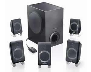 音箱系统 5.1有源音箱 卫星喇叭 8瓦RMS每声道(共4声道)中置20瓦 低音系统 22瓦RMS 信噪比 80dB 放大器频响范围 40Hz-20kHz 卫星音箱箱体 9.5cm x 7.7cm x 14.0cm 低音箱箱体尺寸 19.2cm x 30.0cm x 28.3cm 中置音箱箱体尺寸 9.5cm x 7.7cm x 16.8cm 产品重量 8.5kg 电源供应 13.5 VAC / 5A 外置 线控器 8.2cm x 4.0cm x 2.4cm
